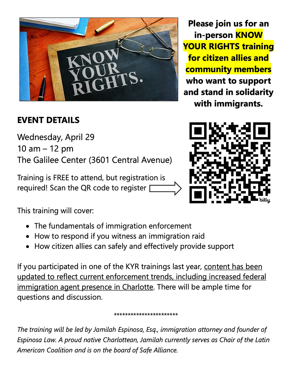 Charlotte screening of "Jesus Was a Migrant" is scheduled for Sunday, May 17 at 3 pm. The director, Dr. Jemar Tisby, will be here that weekend for a Q&A, which offers a great opportunity for meaningful engagement and a deeper understanding of the film and potential next steps afterward.